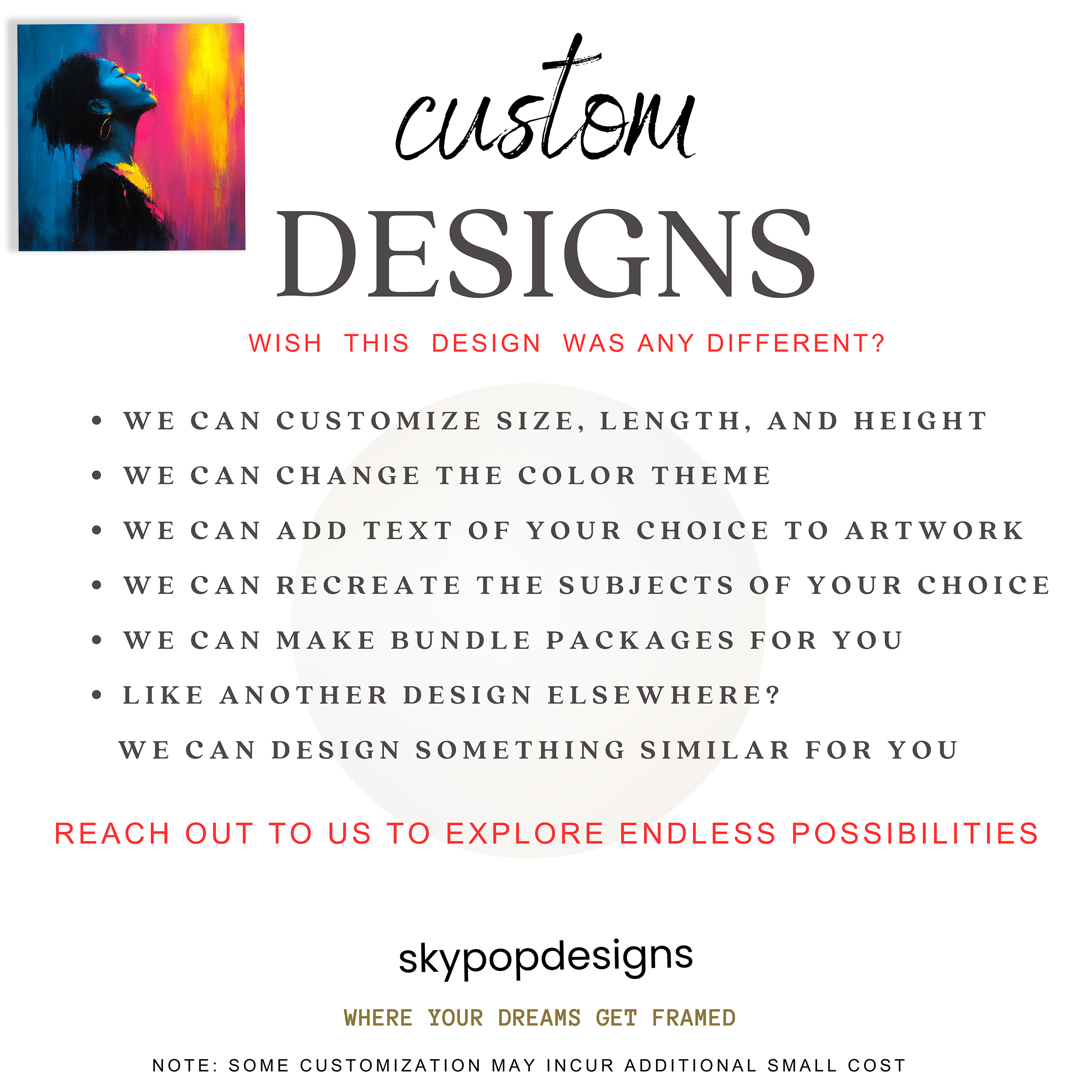 At SKYPOPDESIGNS, we specialize in high-quality canvas and poster prints designed to bring sophistication and style to your space. Please note that our designs are not created with 3D textures or as original oil, acrylic, or watercolor paintings; they are instead HD reproductions of original artwork. This approach allows us to offer these visually stunning pieces at competitive prices, ensuring you receive top-tier, maintenance-free art that’s easy to enjoy.