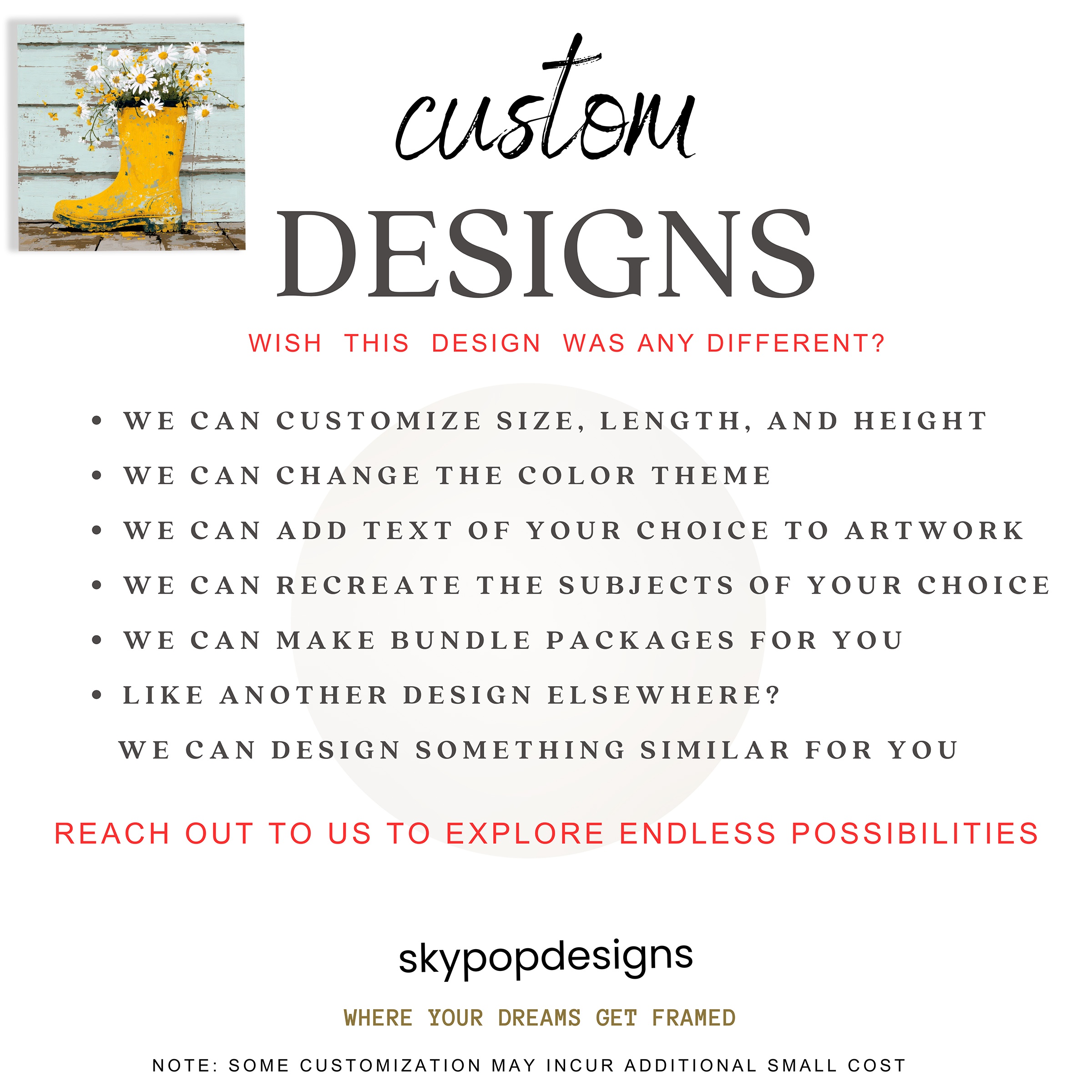 Looking for a custom design, or do you love a particular design but need it in a different size or orientation? Perhaps you’ve found a design elsewhere and wish for us to create something similar for you? Drop us a message! We’re dedicated to meeting your needs and will work closely with you to ensure your vision comes to life.