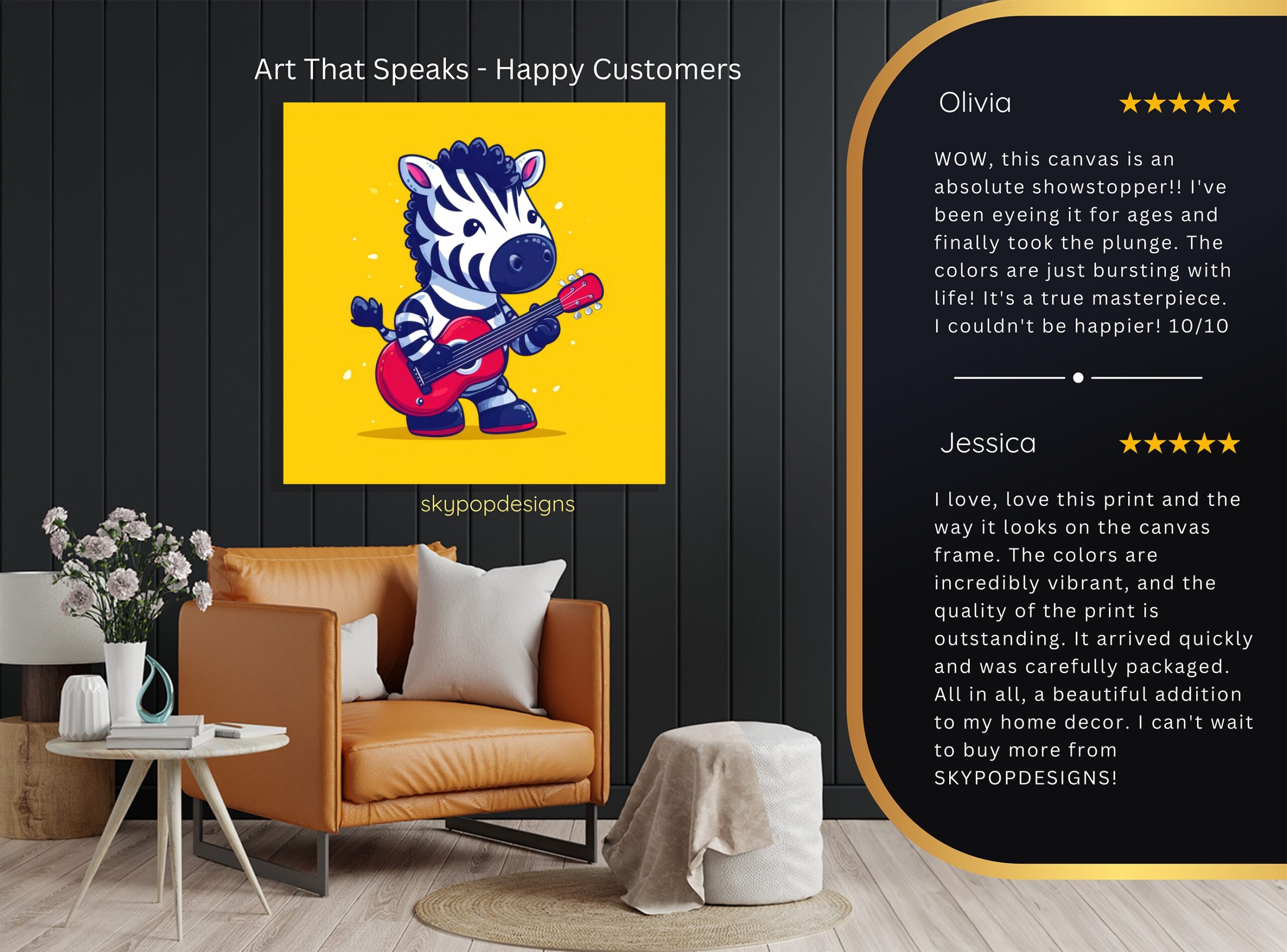Keywords: Zebra Wall Art, Rock Star Zebra, Guitar Canvas Art, Pop Art Zebra, Animal Wall Decor, Whimsical Art Print, Modern Decor, Contemporary Art, Bohemian Style, Children’s Room Decor, Living Room Art, Bedroom Wall Art, Game Room Decor, Yellow Black White, Multicolor Art, Red Guitar Art, Music Lover Gift, Unique Wall Art, Canvas Print, Fun Wall Decor, Playful Art, Joyful Decor, Creative Art, High-Quality Canvas, Statement Art, Housewarming Gift, Birthday Gift, Holiday Gift, Animal Art Print, Graphic Design Art