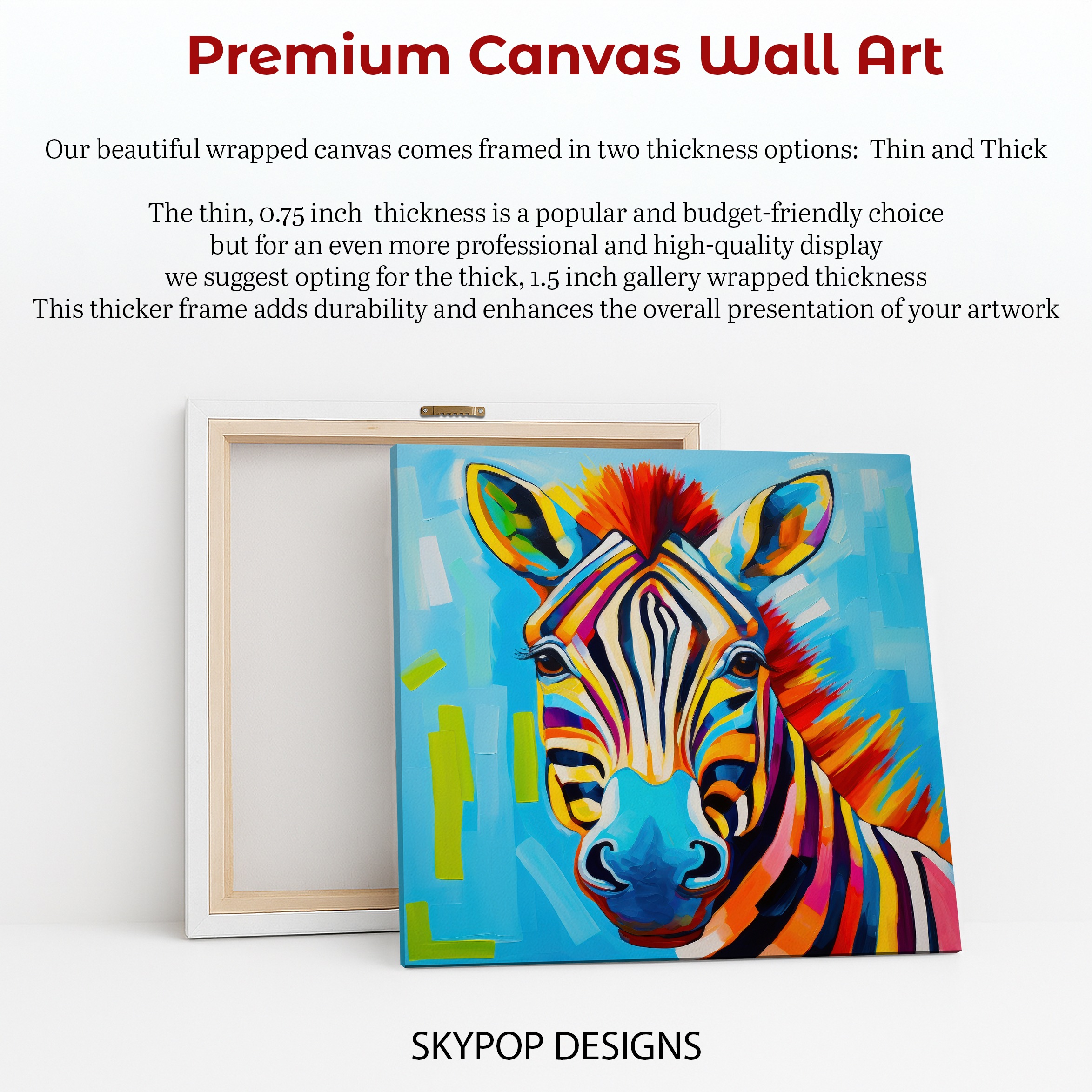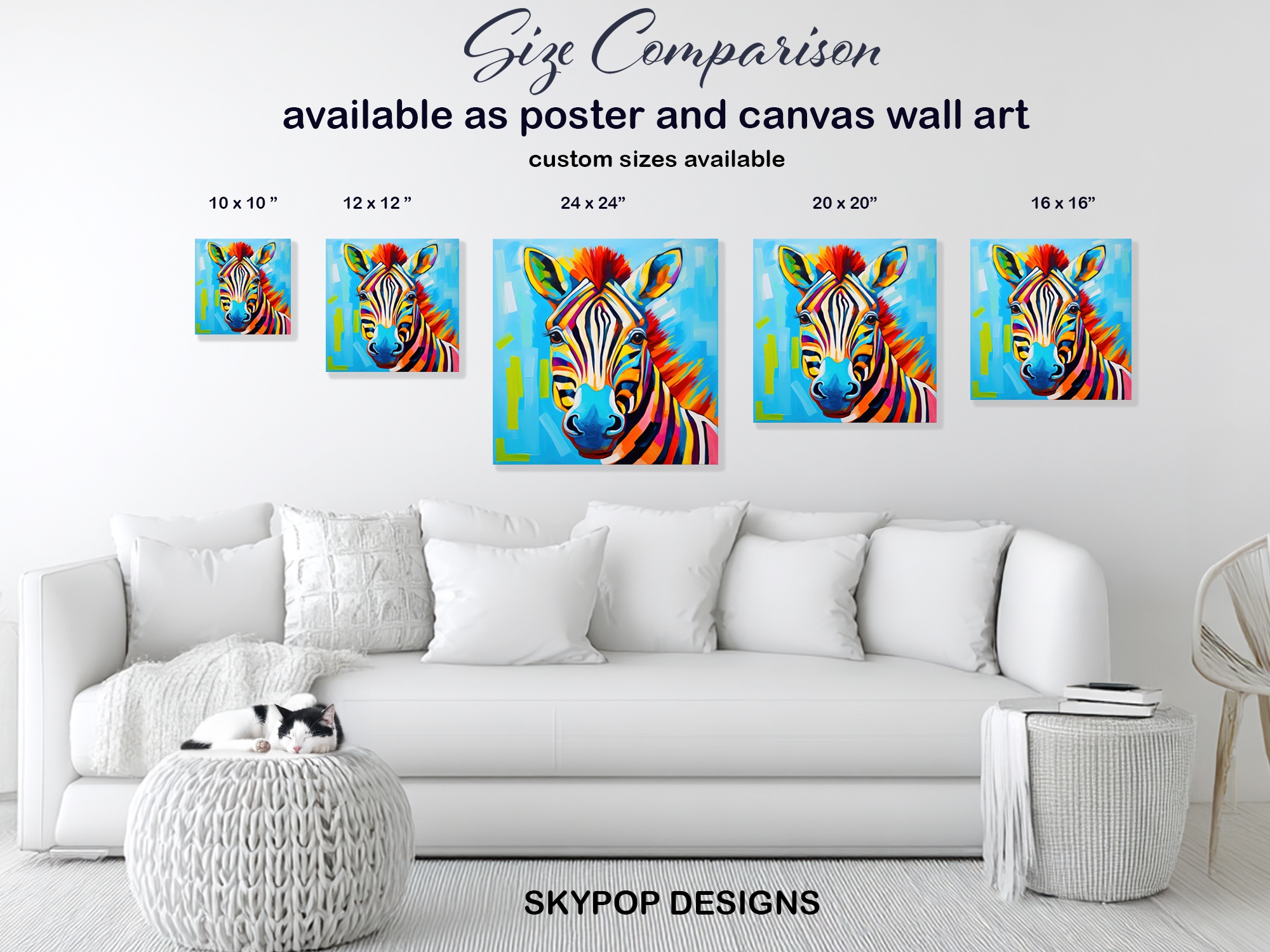 Keywords: Vibrant Zebra Art, Canvas Wall Art, Abstract Zebra Print, Animal Wall Decor, Pop Art Zebra, Modern Home Decor, Contemporary Art Print, Bohemian Decor, Living Room Art, Bedroom Wall Art, Entryway Decor, Office Wall Art, Blue Green Art, Multicolor Zebra, Bold Statement Art, Wild Beauty Art, Artistic Poster, Zebra Poster Print, Vibrant Colors Art, Energetic Wall Art, Modern Bedroom Decor, Chic Entryway Art, Eclectic Decor Accent, Unique Wall Art, Artistic Flair Decor, Housewarming Gift Art, Birthday Gift Decor, Multicolor Art Print, High-Quality Canvas, Zebra Splash Art