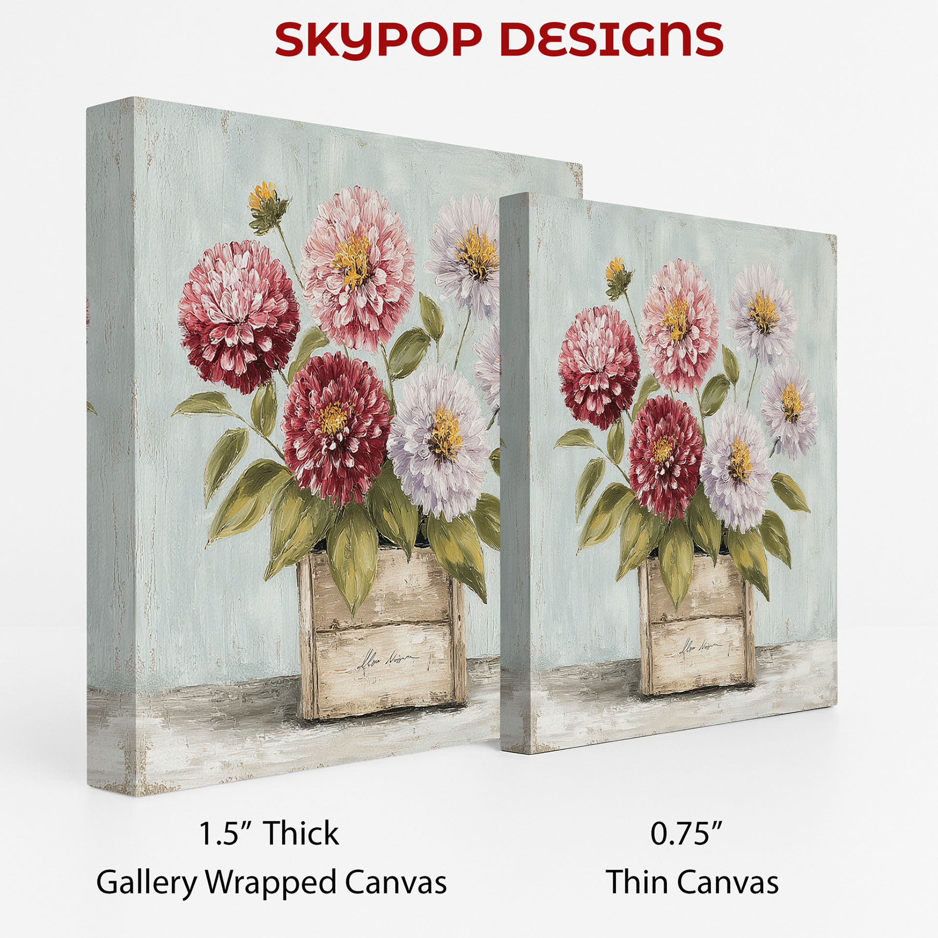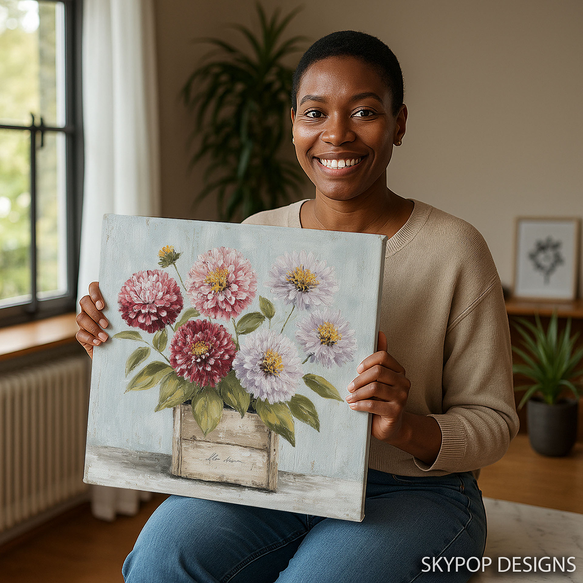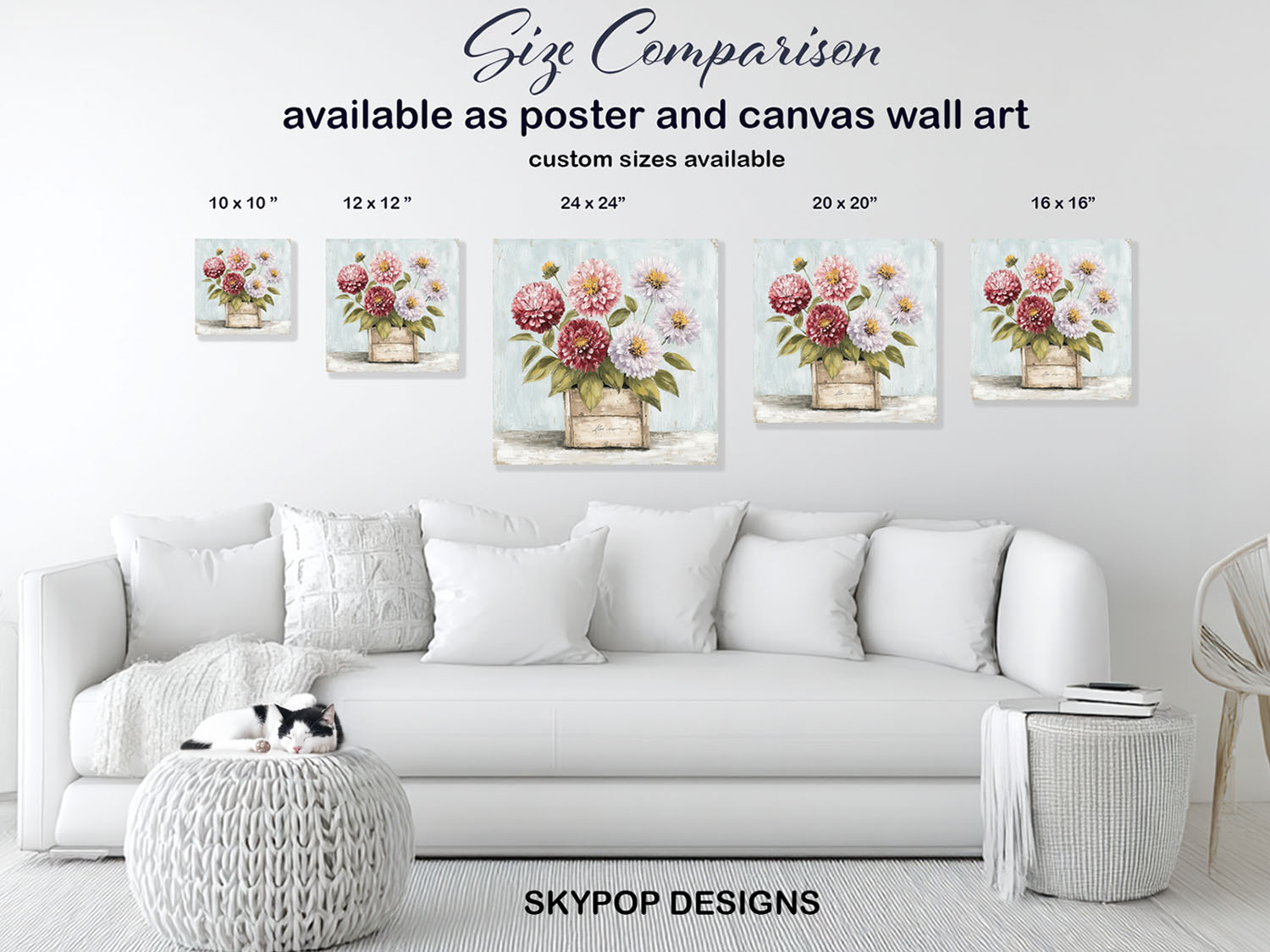 Transform your space with stunning Zinnia canvas wall art that brings the beauty of nature indoors. This captivating poster or canvas wall art showcases vibrant zinnias in a charming wooden crate, perfect for adding a touch of farmhouse charm or rustic elegance to your living room decor. The delicate pink and white blooms, accented by natural green leaves, create a refreshing and uplifting atmosphere. This floral artwork is ideal for creating a cozy and inviting ambiance in your dining room or bedroom. The classic still life style combined with the farmhouse aesthetic makes this piece a versatile addition to various interior styles, including shabby chic. High-quality printing captures the rich textures and painterly details, making this canvas wall art a focal point in any room. Its size versatility allows it to seamlessly fit into hallways or create a focal point above a mantel. This striking floral wall art also makes a perfect housewarming, birthday, or holiday gift for anyone who appreciates timeless beauty. Elevate your home decor with this beautiful Zinnia canvas art that radiates warmth and brings the outdoors in. Celebrate the simple joy of flowers with this heirloom-quality poster or canvas wall art and enhance your wall decor today.